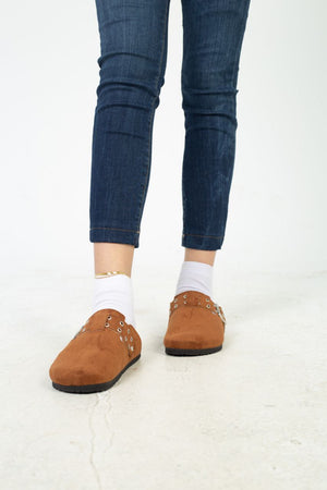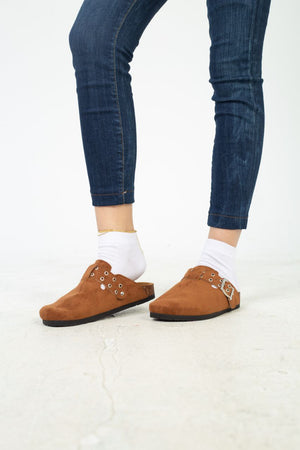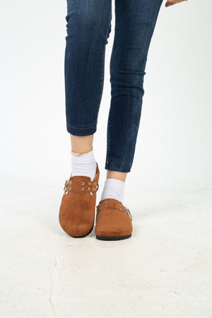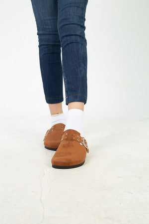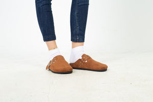 Chamois Leather Buckle Clog Mules – Havan