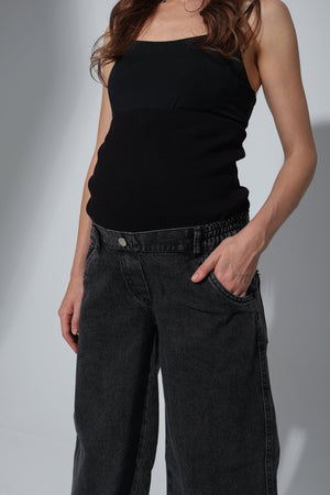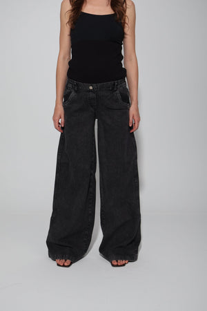 - Pattern / Style: Vintage-washed denim with a relaxed, wide-leg silhouette