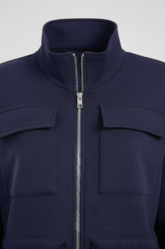 Cotton Blend Plain Utility Lounge Jacket – Navy