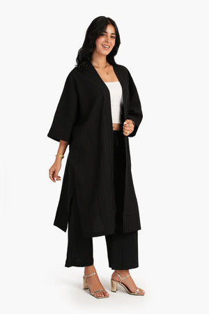 Linen Crinkle Kimono – Black
