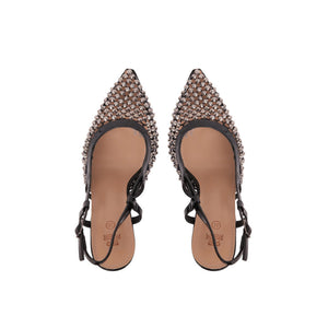Crystal Mesh Slingback Heels – Black (SR-3650)