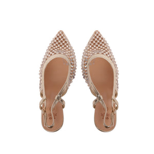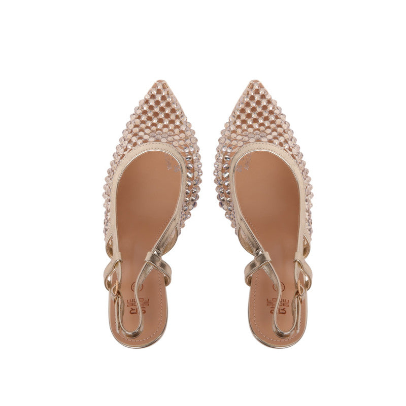 Crystal Mesh Slingback Heels – Gold (SR-3650)