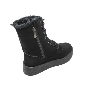 Faux Leather Fur-Lined Combat Boots – Black
