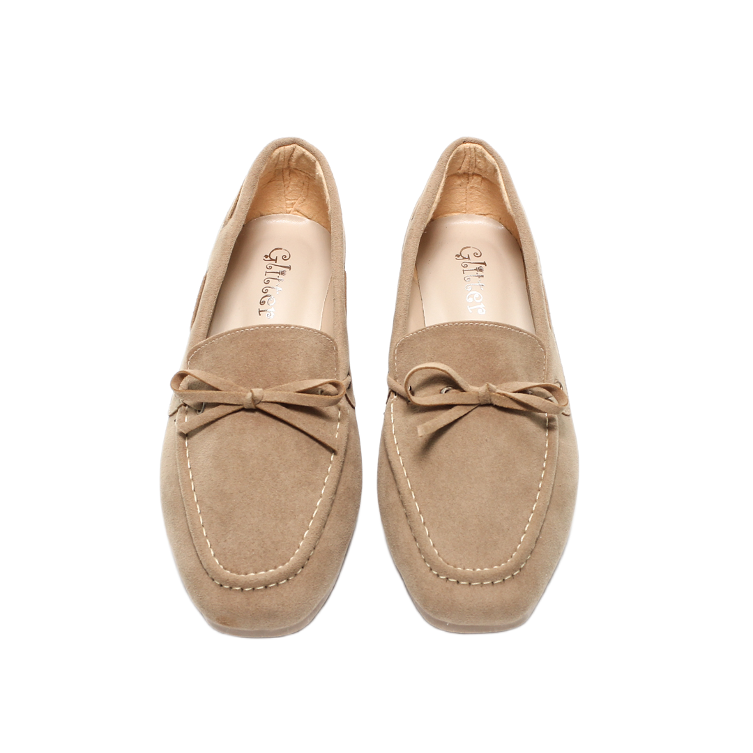 Faux Leather Suede Loafers – Beige