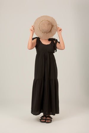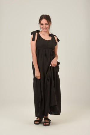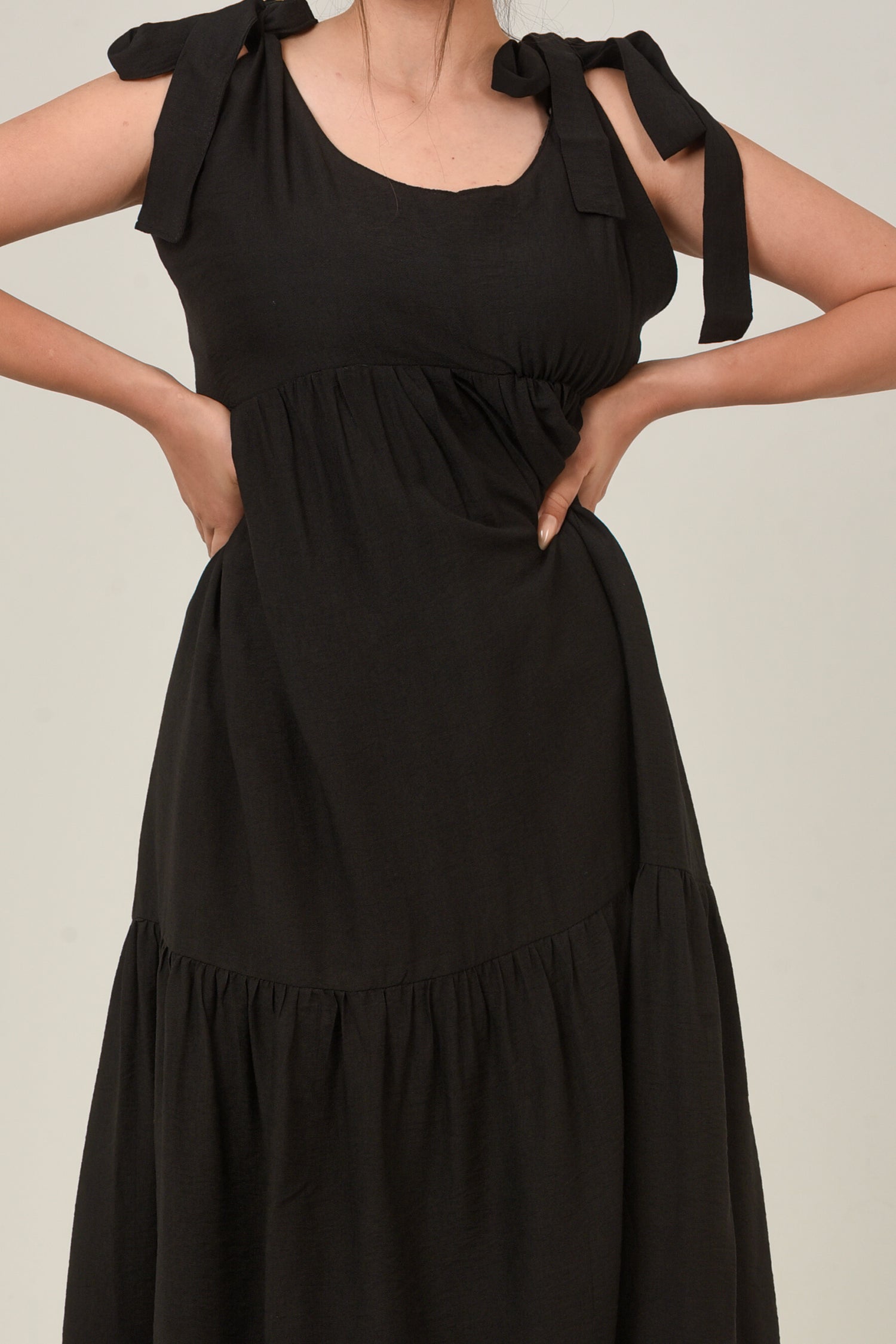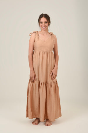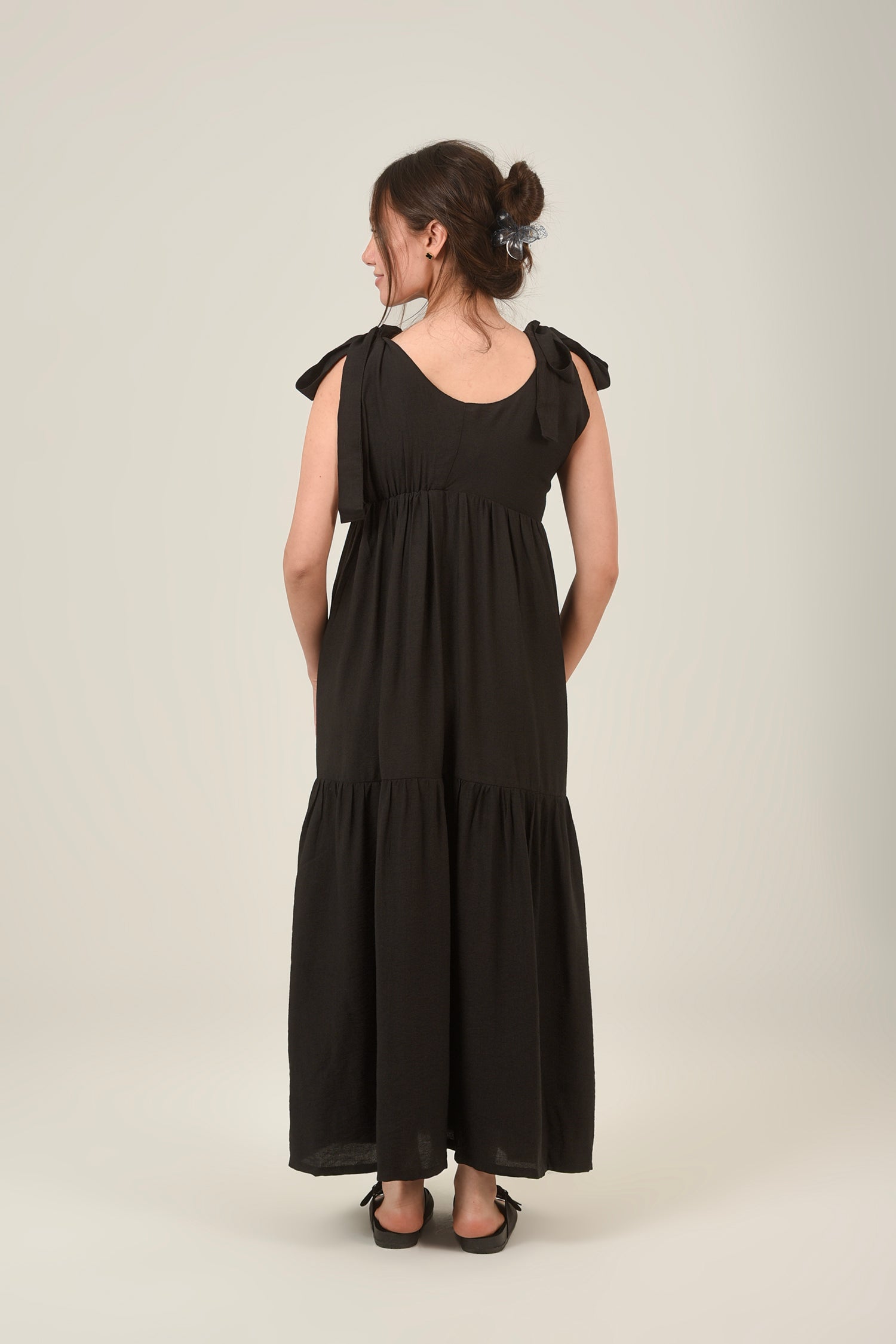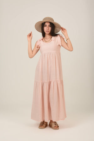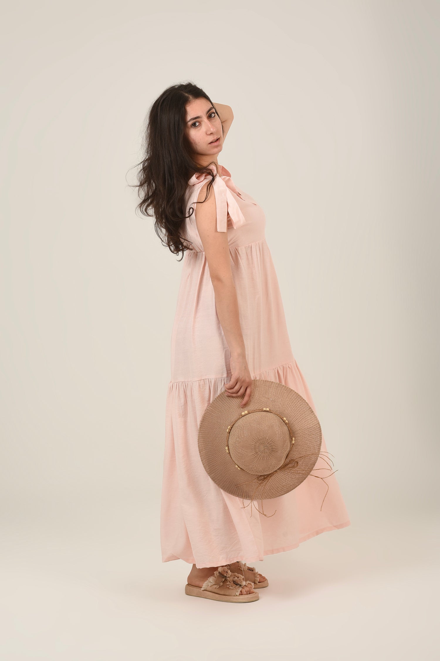 Linen Flare Flowy Tie Shoulders Maxi Dress