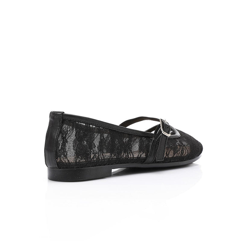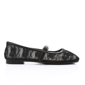 Floral Lace Strap Ballet Flats – Black