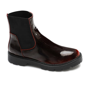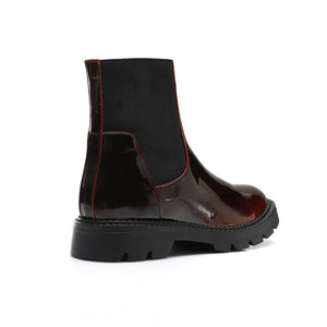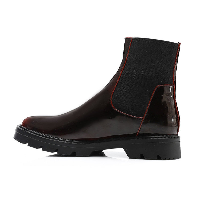 Glossy Elastic Panel Chelsea Ankle Boots – Brown Red