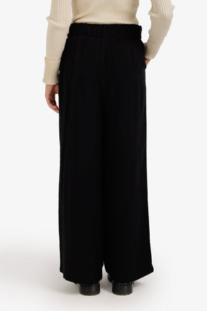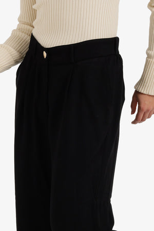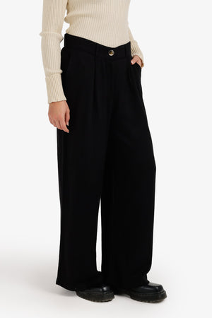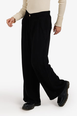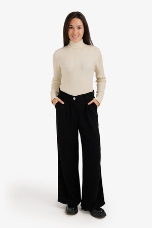 High-Waist Flowy Straight Pants – Black