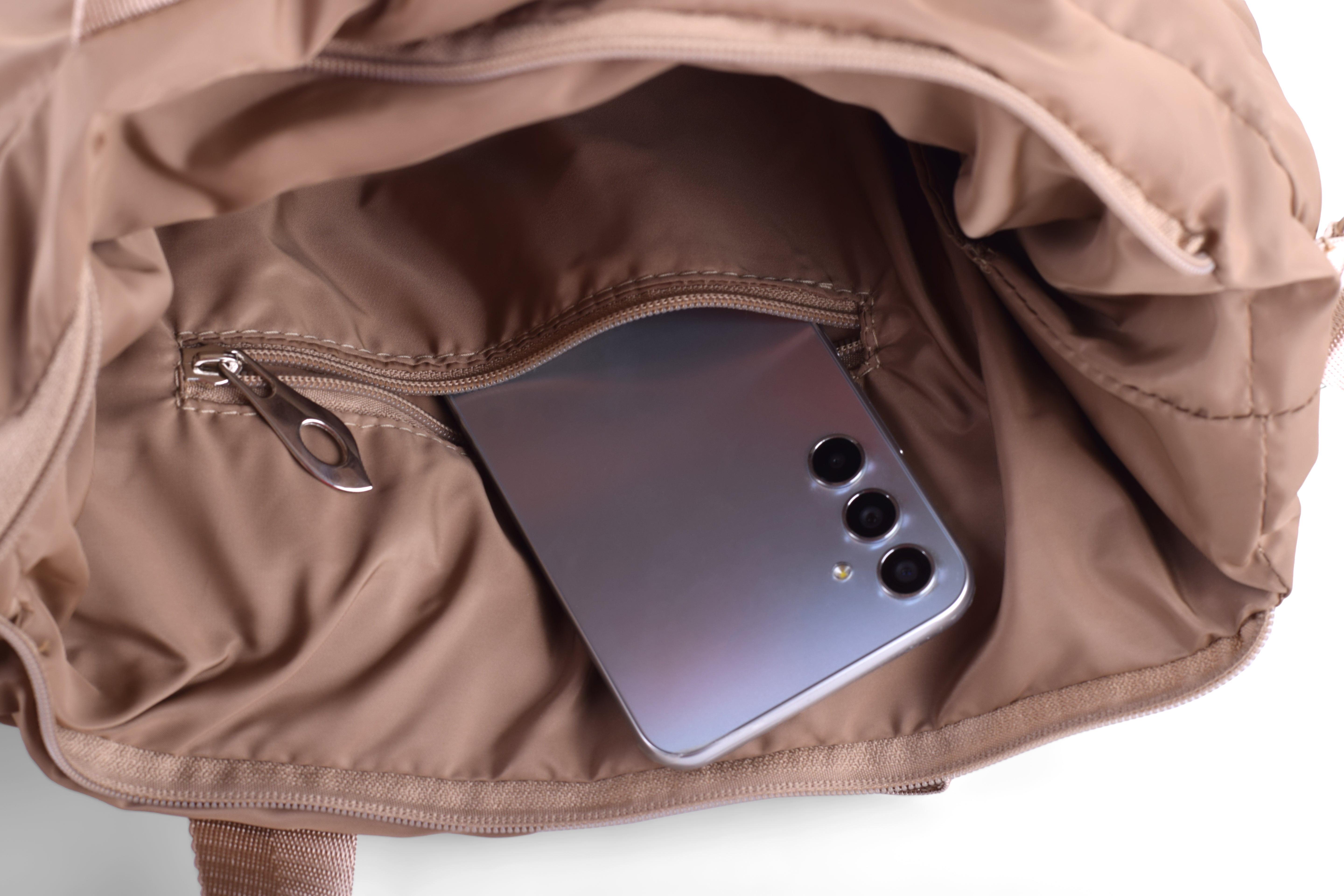 - Internal Organization: Features two internal pockets (20cm x 15cm), one with a secure zipper closure.