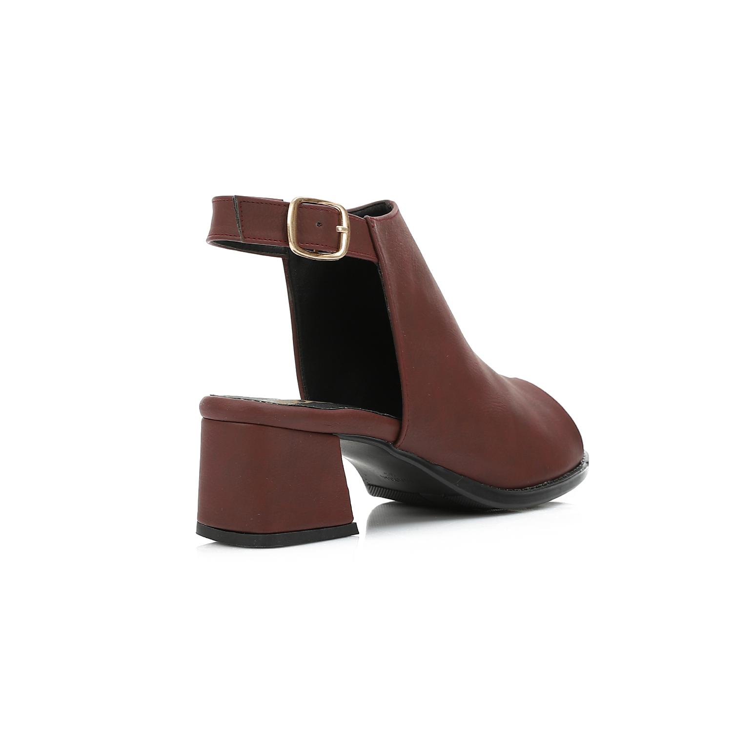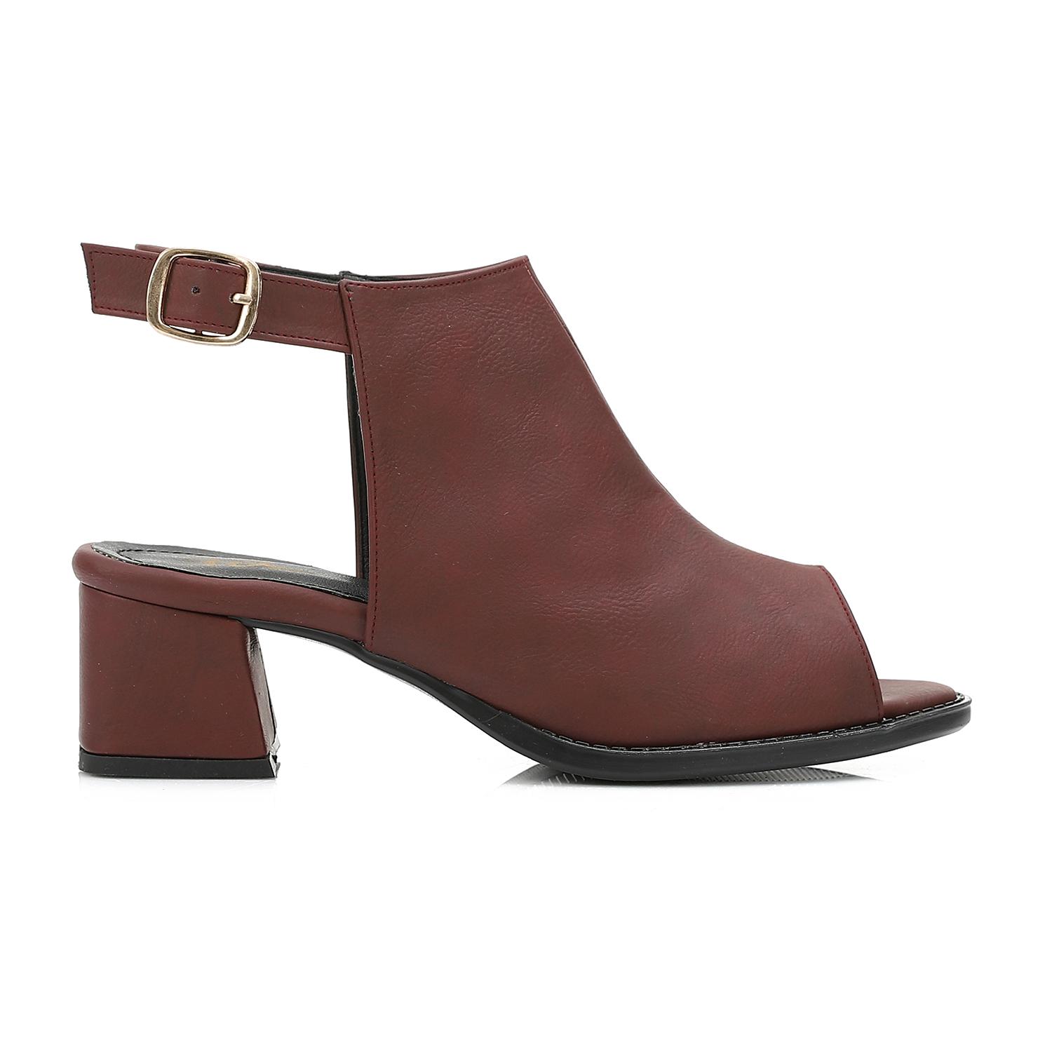 Leather Plain Heeled Sandals – Burgundy