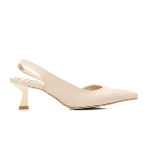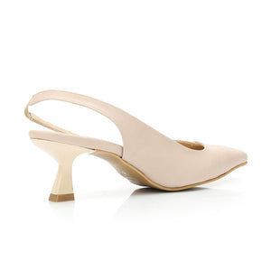 Leather Plain Slingback Pumps – Beige