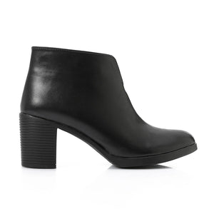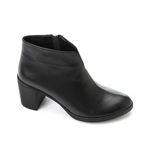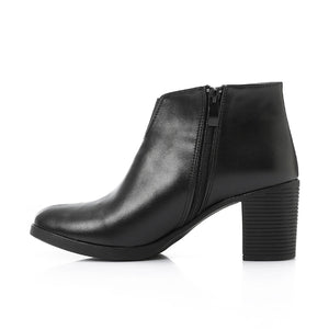 Leather Solid Ankle Boots – Black