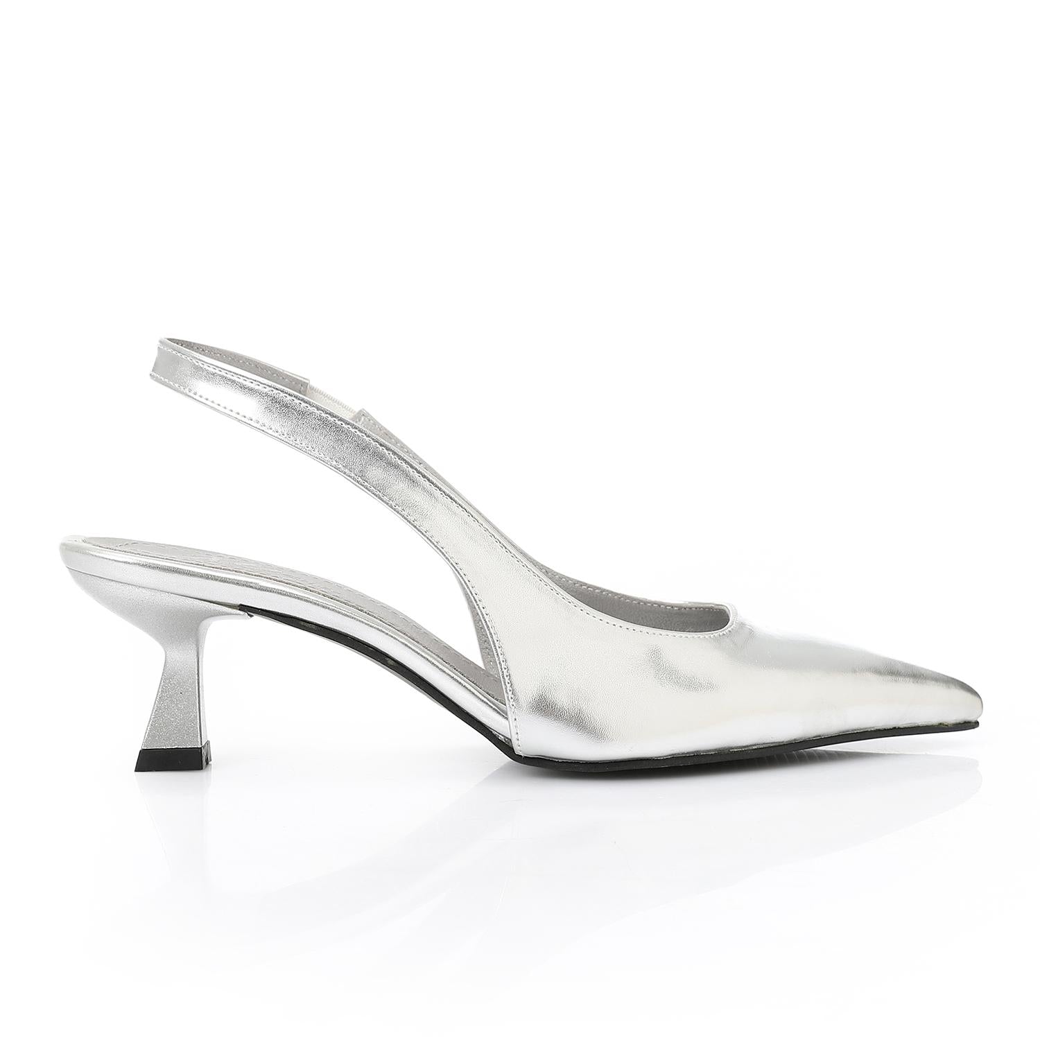 Leather Solid Slingback Pointed-Toe Pumps – Silver