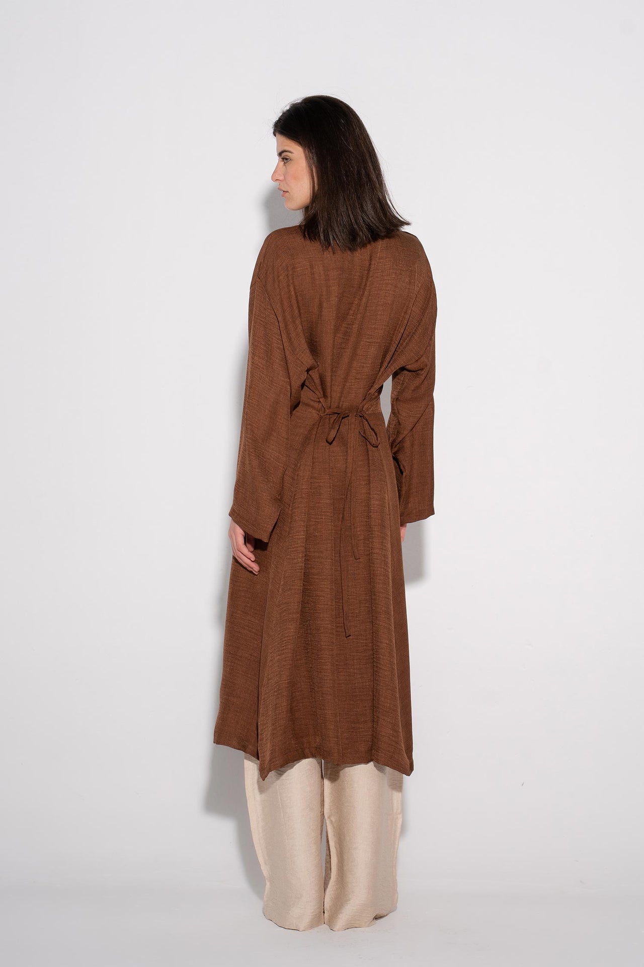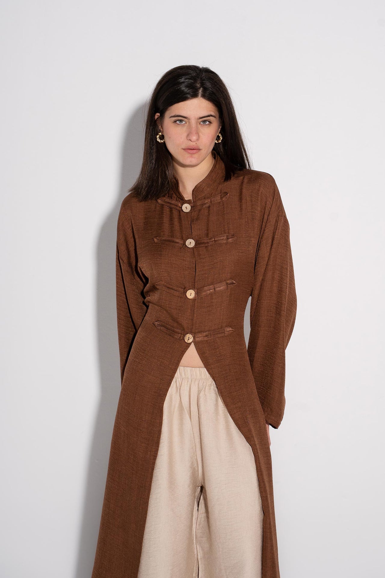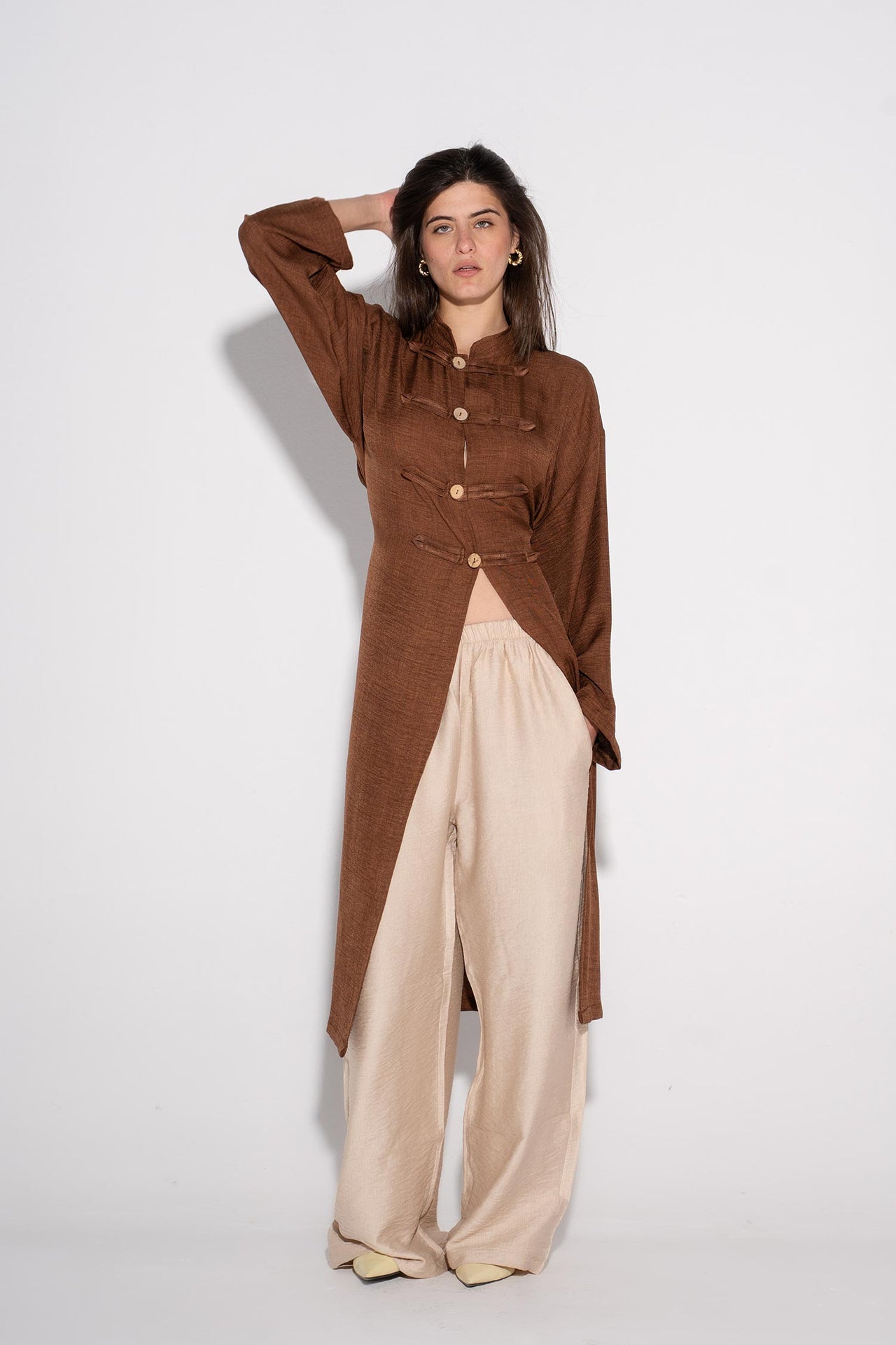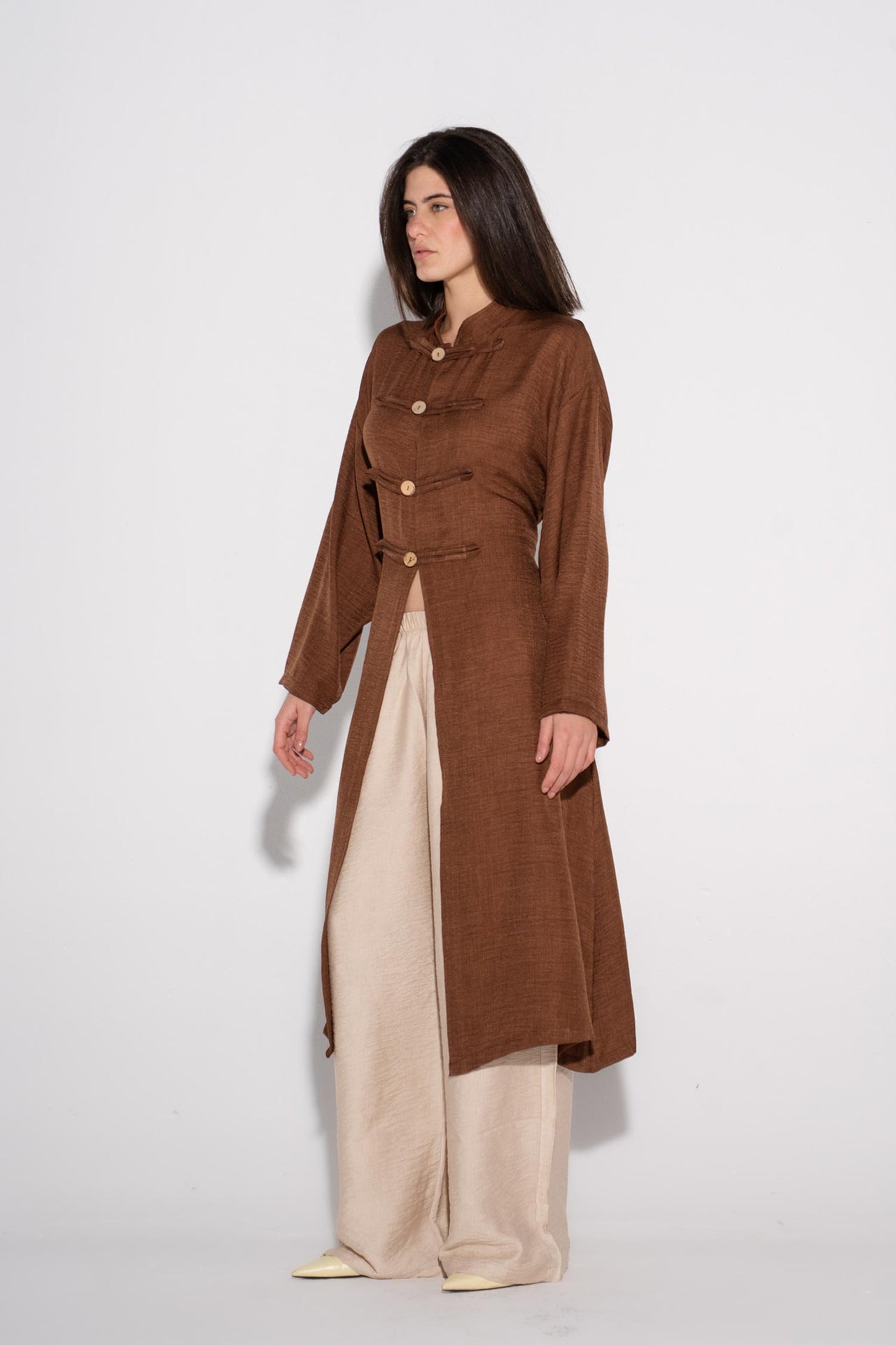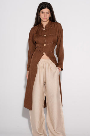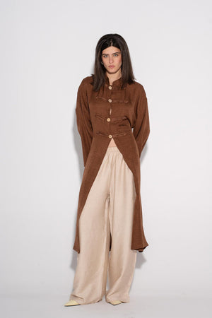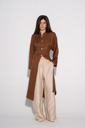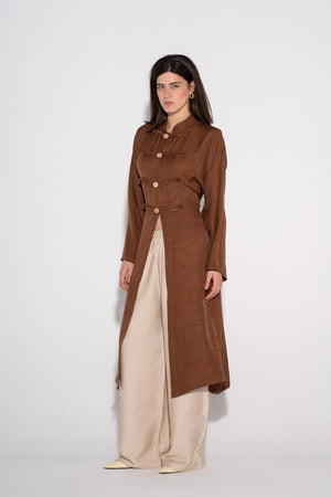 Longline Buttoned Kimono - Cafe