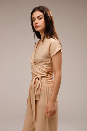 Linen Wrap-Front Top - Beige