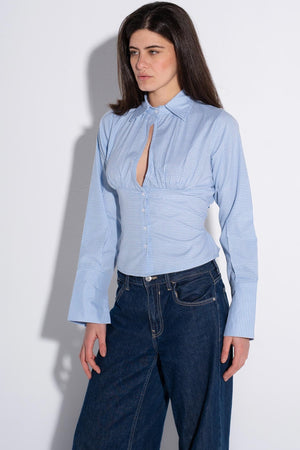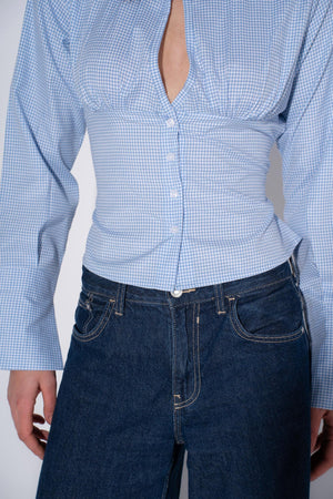 Crisp micro-check button shirt in light blue, designed for effortless everyday style. The refined check pattern brings subtle sophistication to your wardrobe, while the button-front closure offers easy layering versatility. Crafted from soft, breathable fabric that moves with you throughout the day—ideal for casual wear or smart-casual occasions.