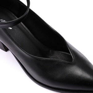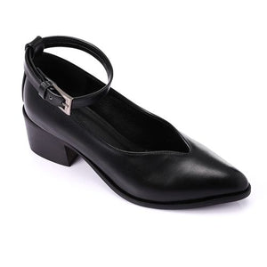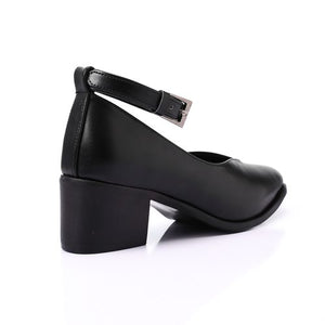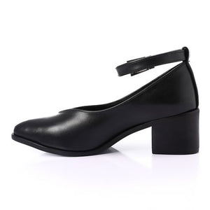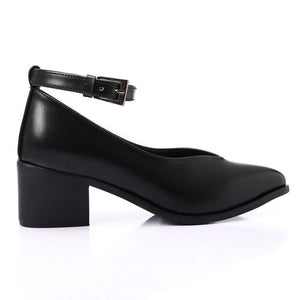 Minimal Buckle Strap Mid-Heel Pumps – Black