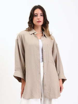 Linen Long Sleeves Relaxed Textured Shirt - Beige