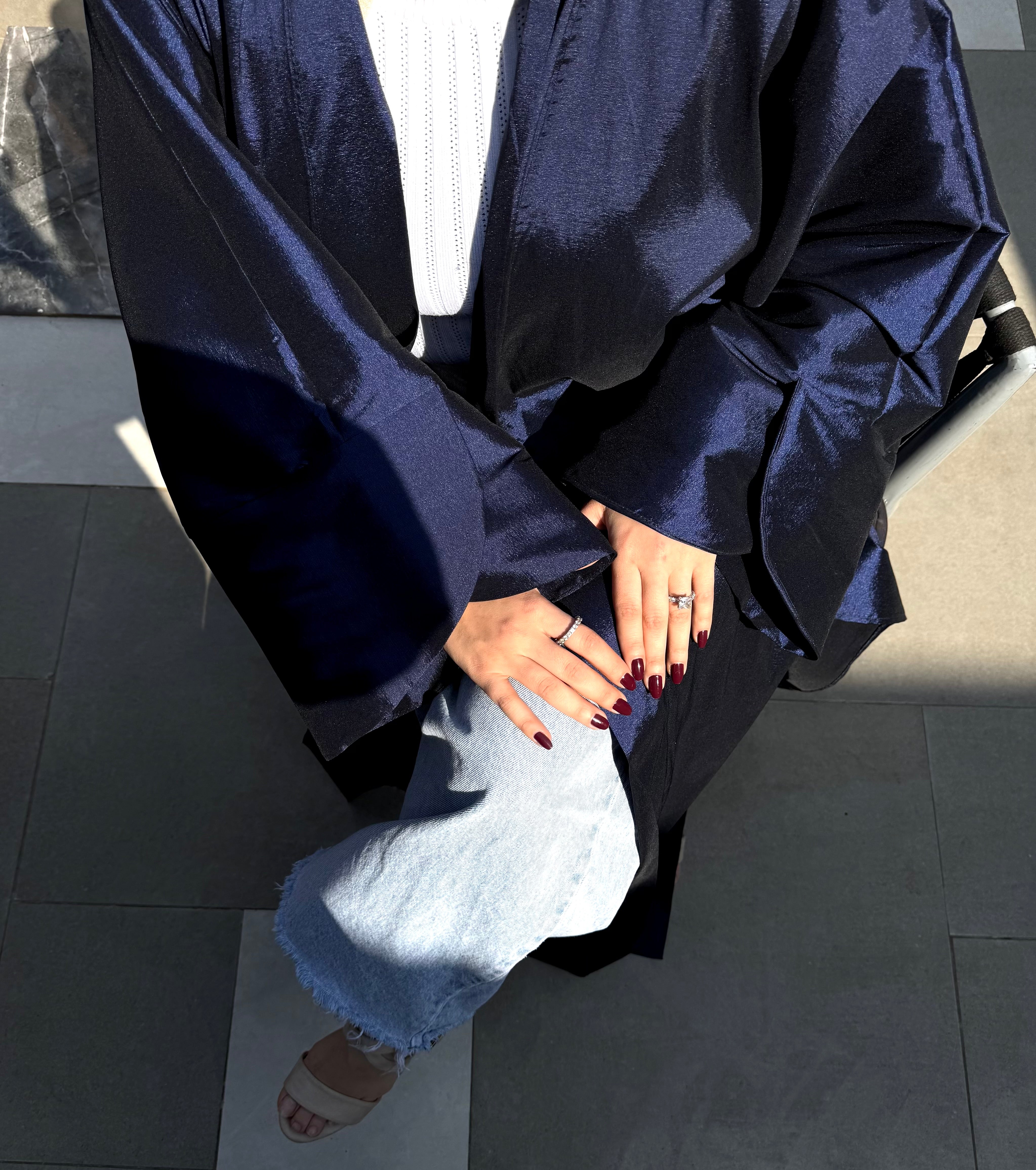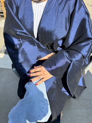 Metallic Satin Solid Kaftan – Navy Blue