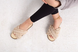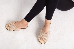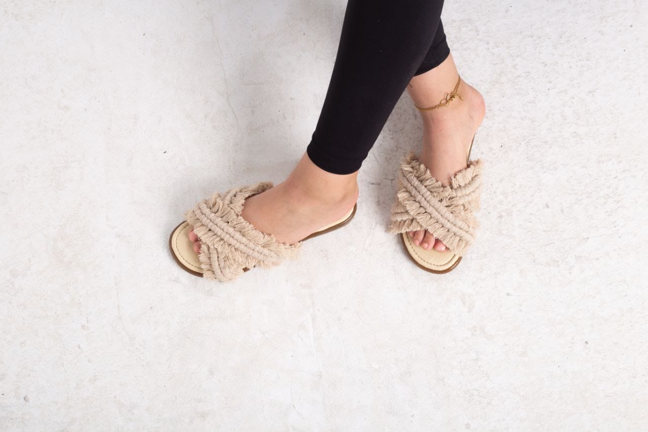 - Key Features: Macrame cross pattern, soft cushioned lining, lightweight and durable sole