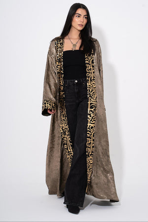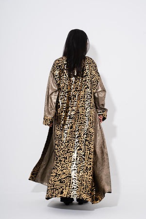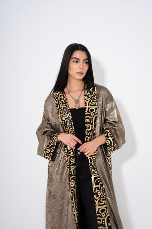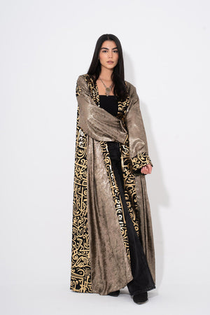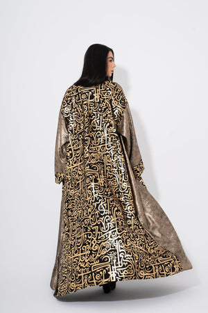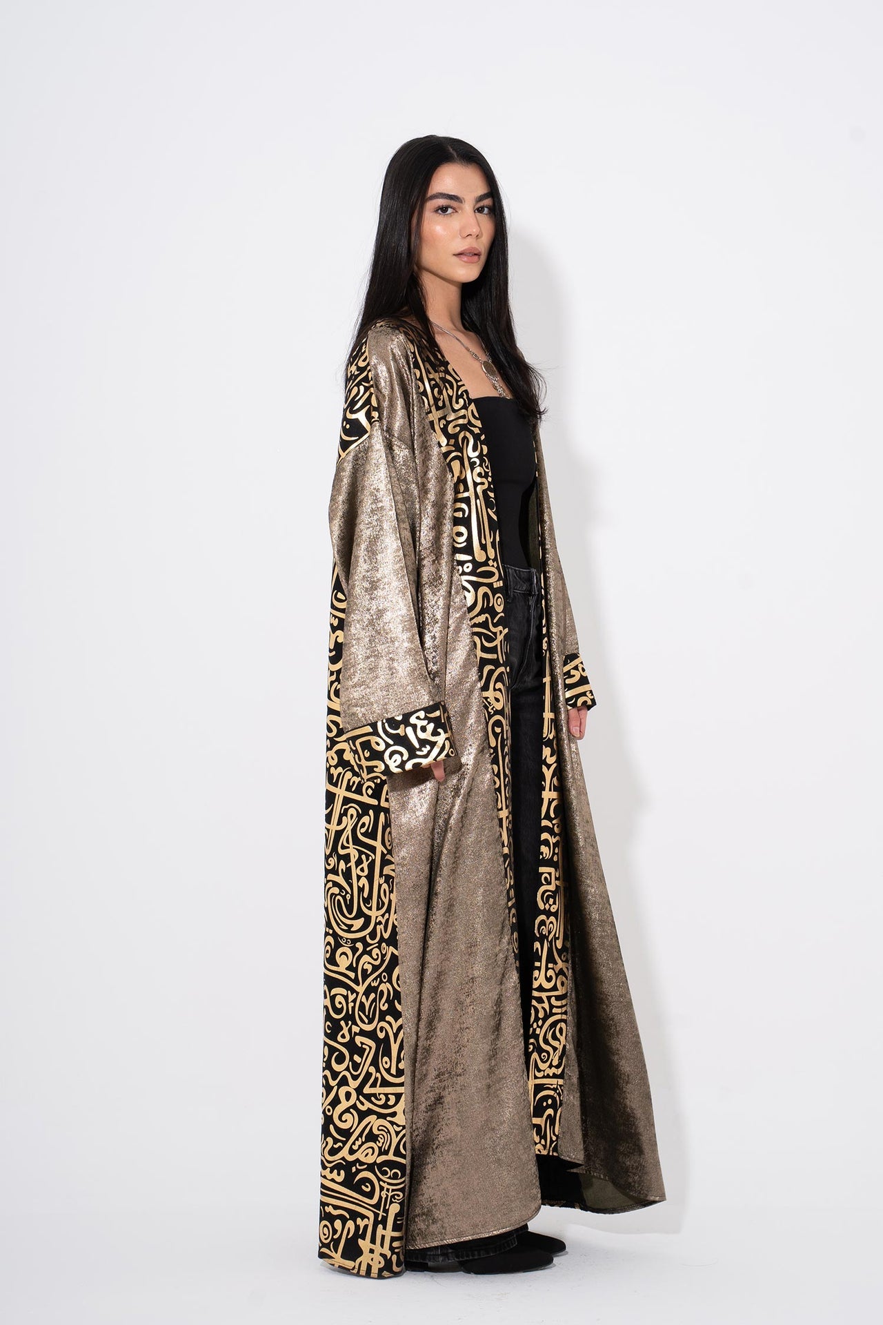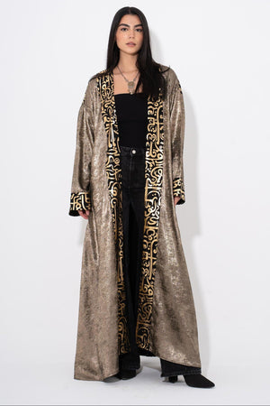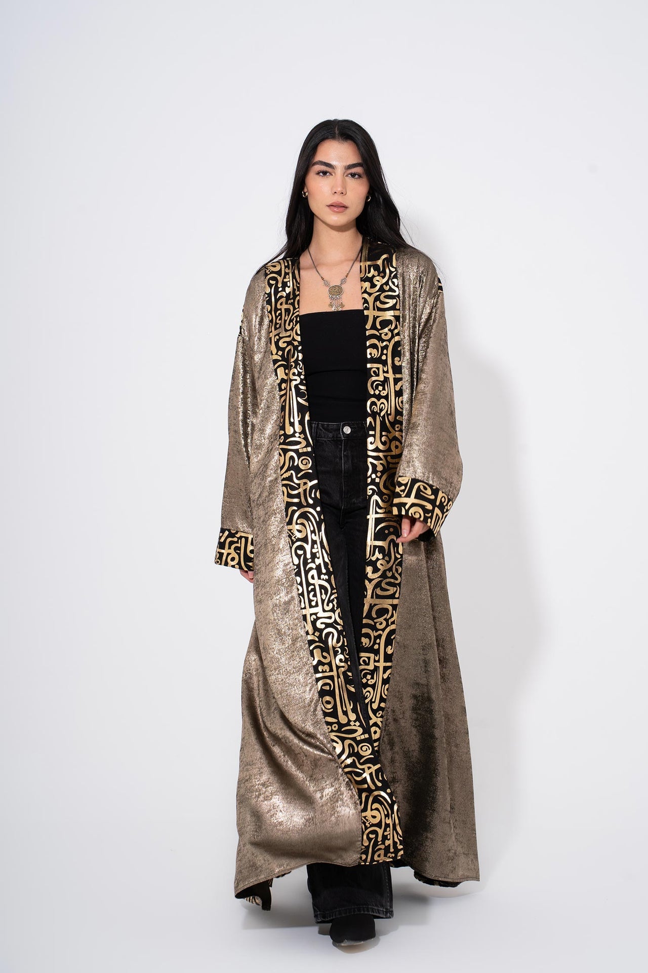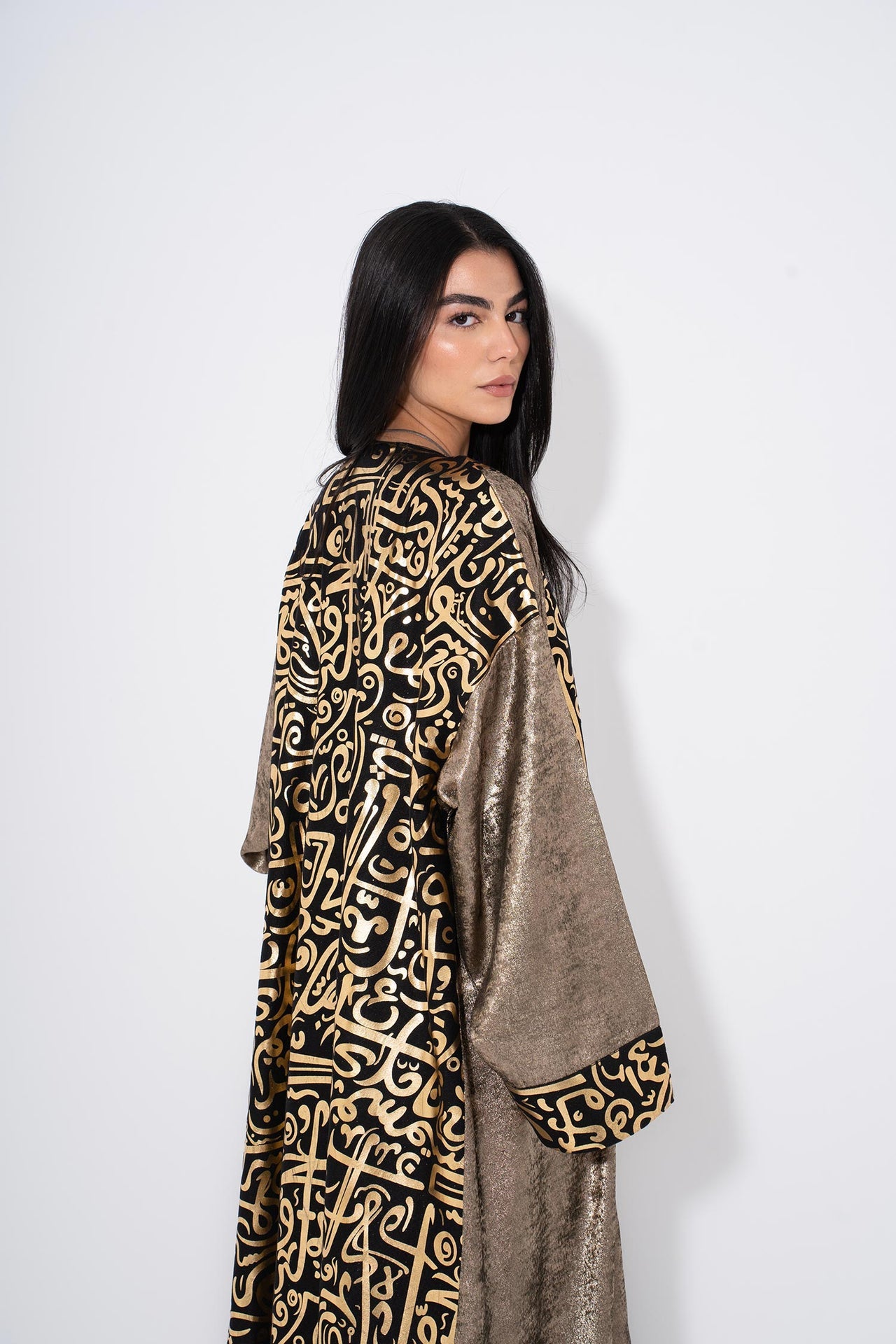 Crafted piece celebrates traditional elegance with its distinctive Arabic trim detailing, creating a look that feels both authentic and refined. The generous, flowing silhouette ensures comfortable all-day wear while the warm gold accents add a touch of sophistication to your wardrobe