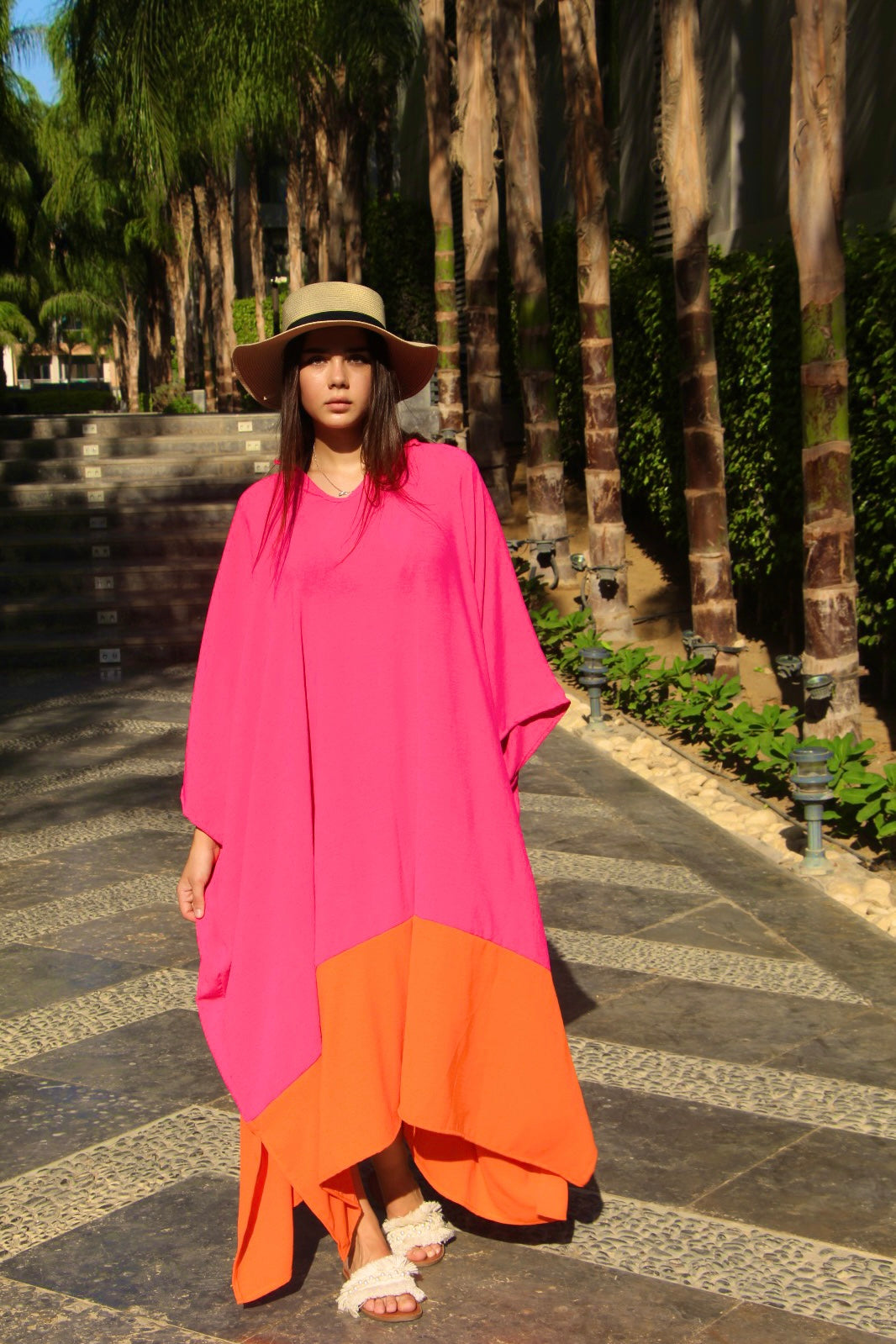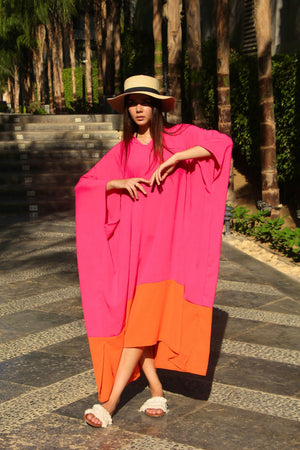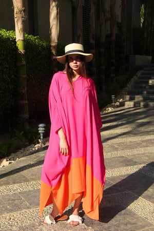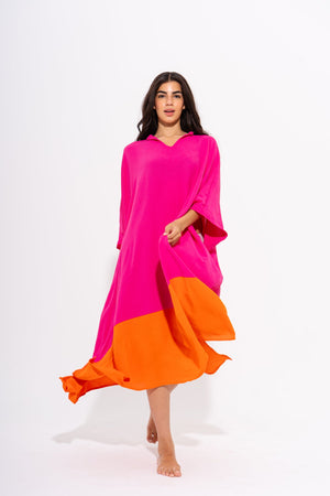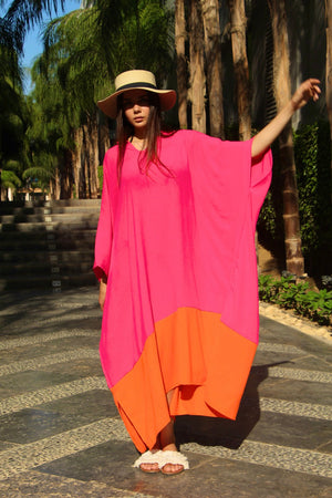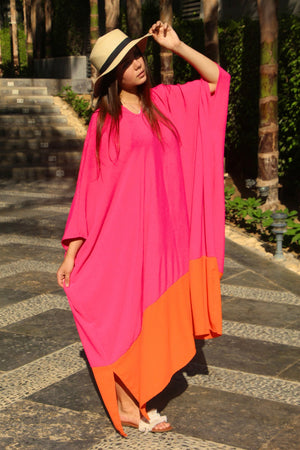 Linen Colorblock Kaftan Dress – Orange & Pink