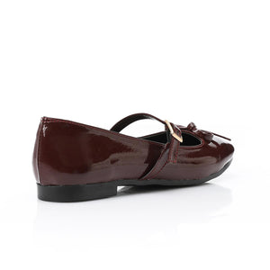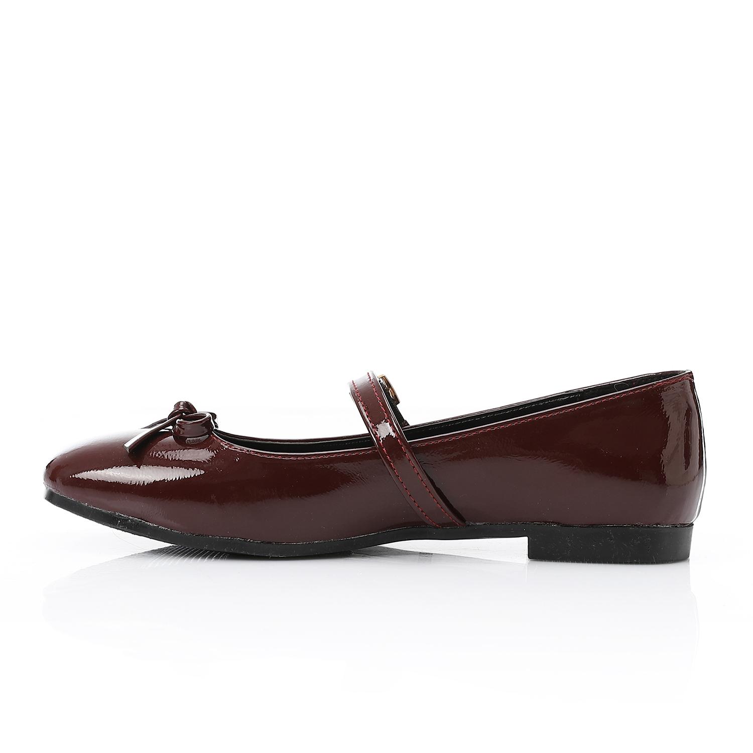 Patent Leather Plain Flat Shoes – Burgundy