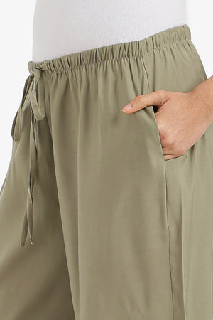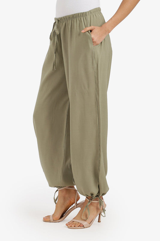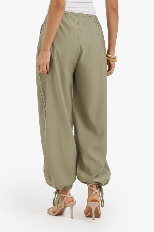 Plain Adjustable Waist Cinched Pants – Olive