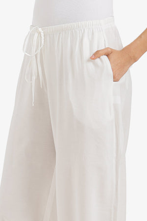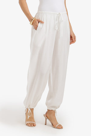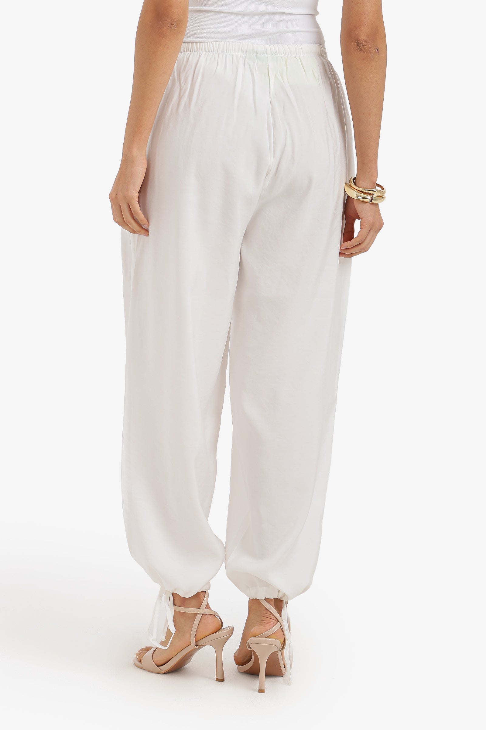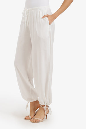 Plain Adjustable Waist Cinched Pants – White