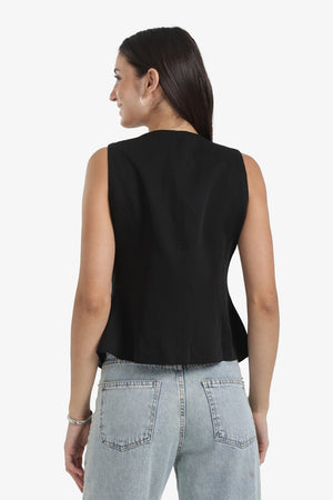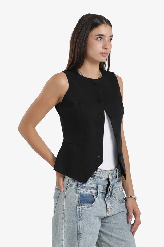 Plain Asymmetric Hem Vest – Black