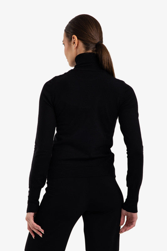 Plain Buttoned Cuff Slim Pullover – Black