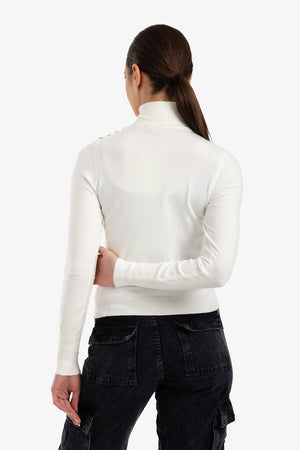 Plain Buttoned Cuff Slim Pullover – Off White