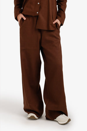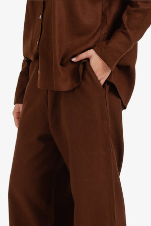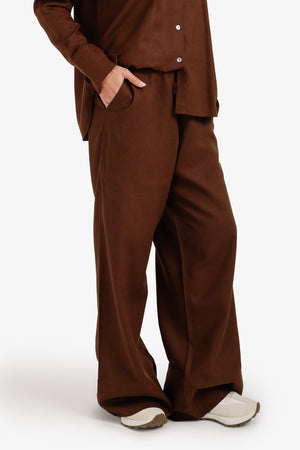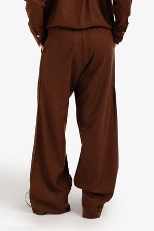 Plain Elastic Wide-Leg Pants – Dark Brown