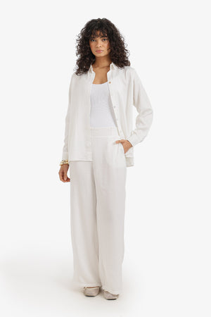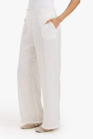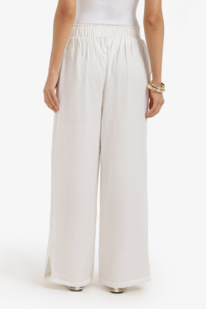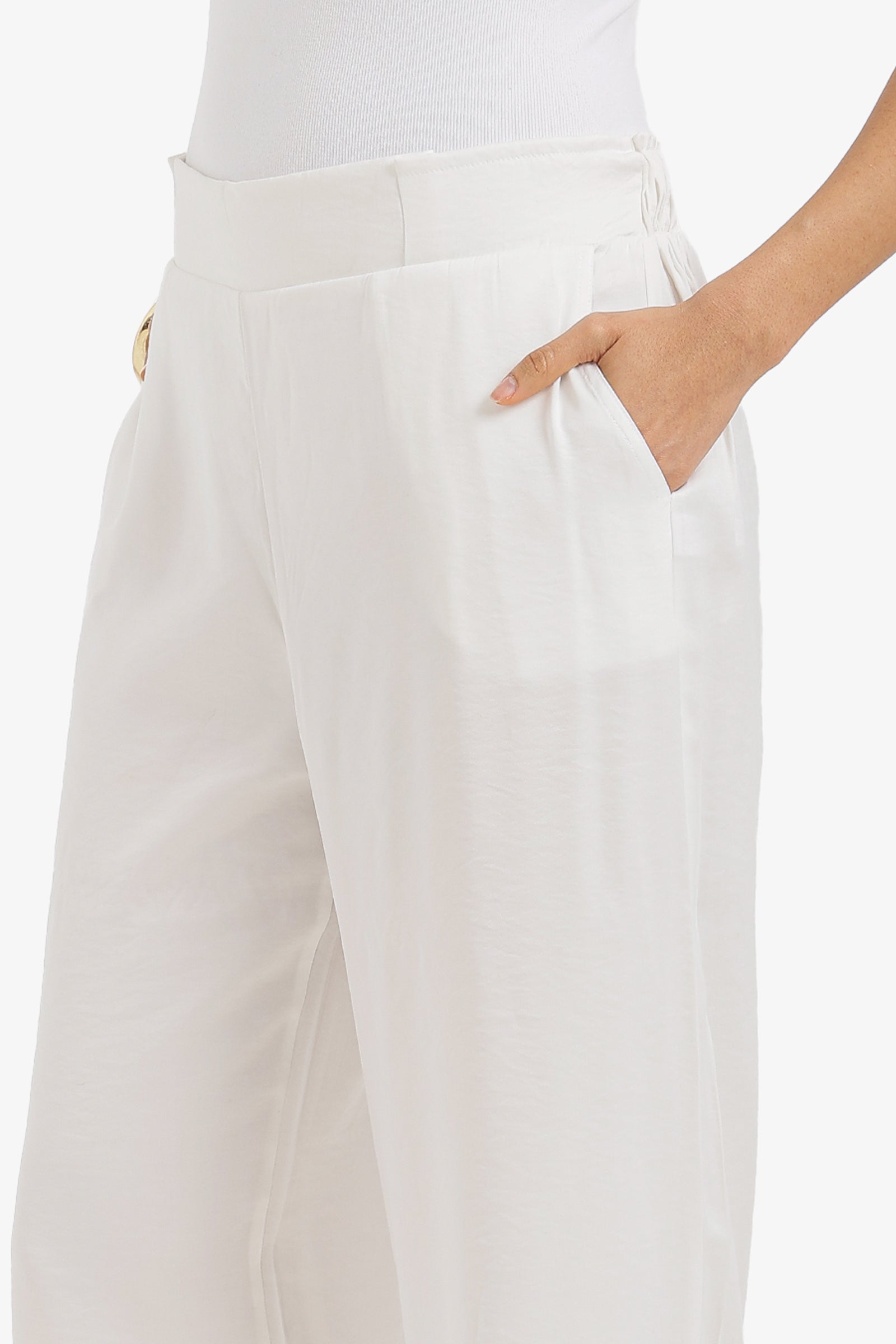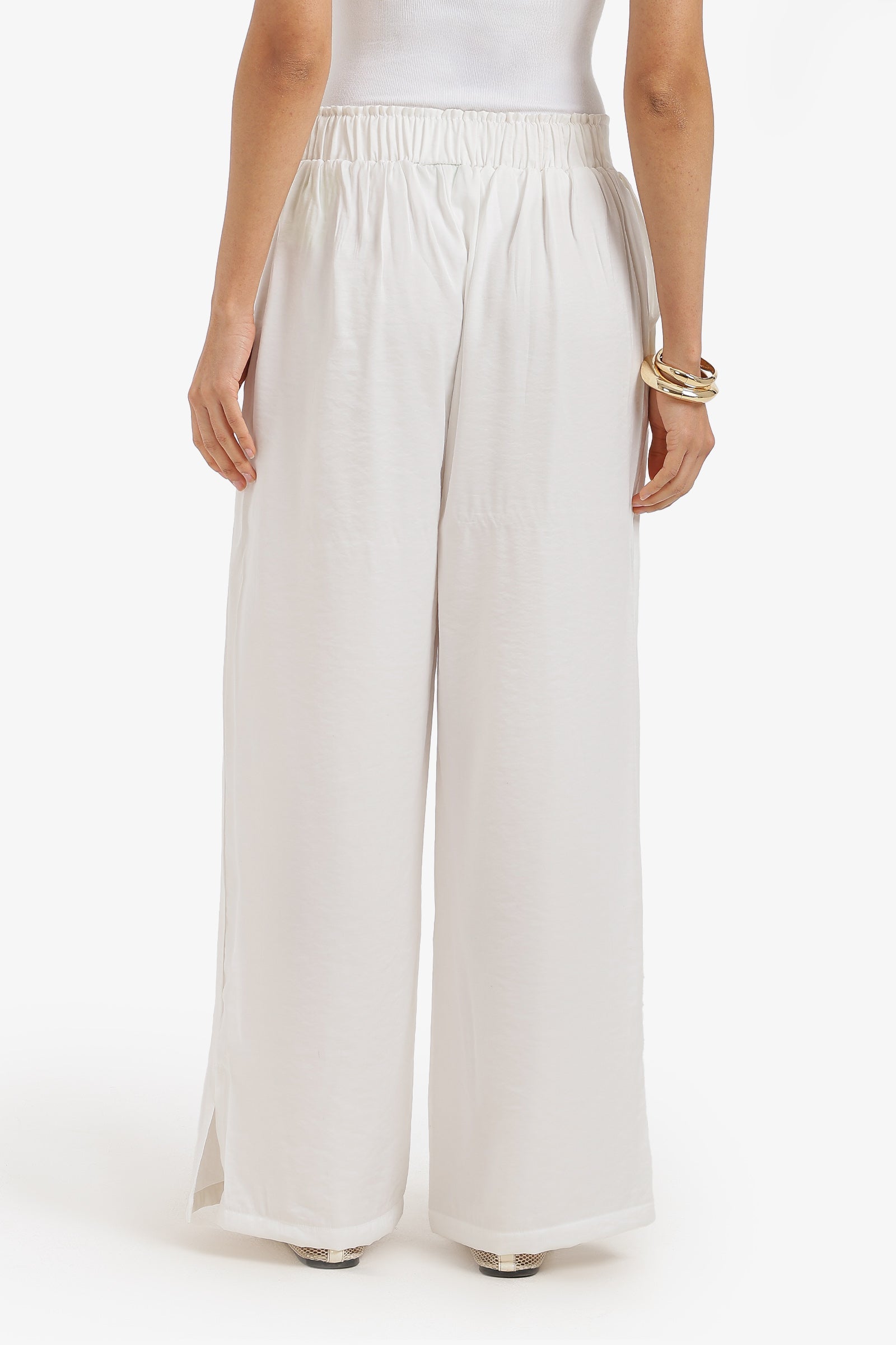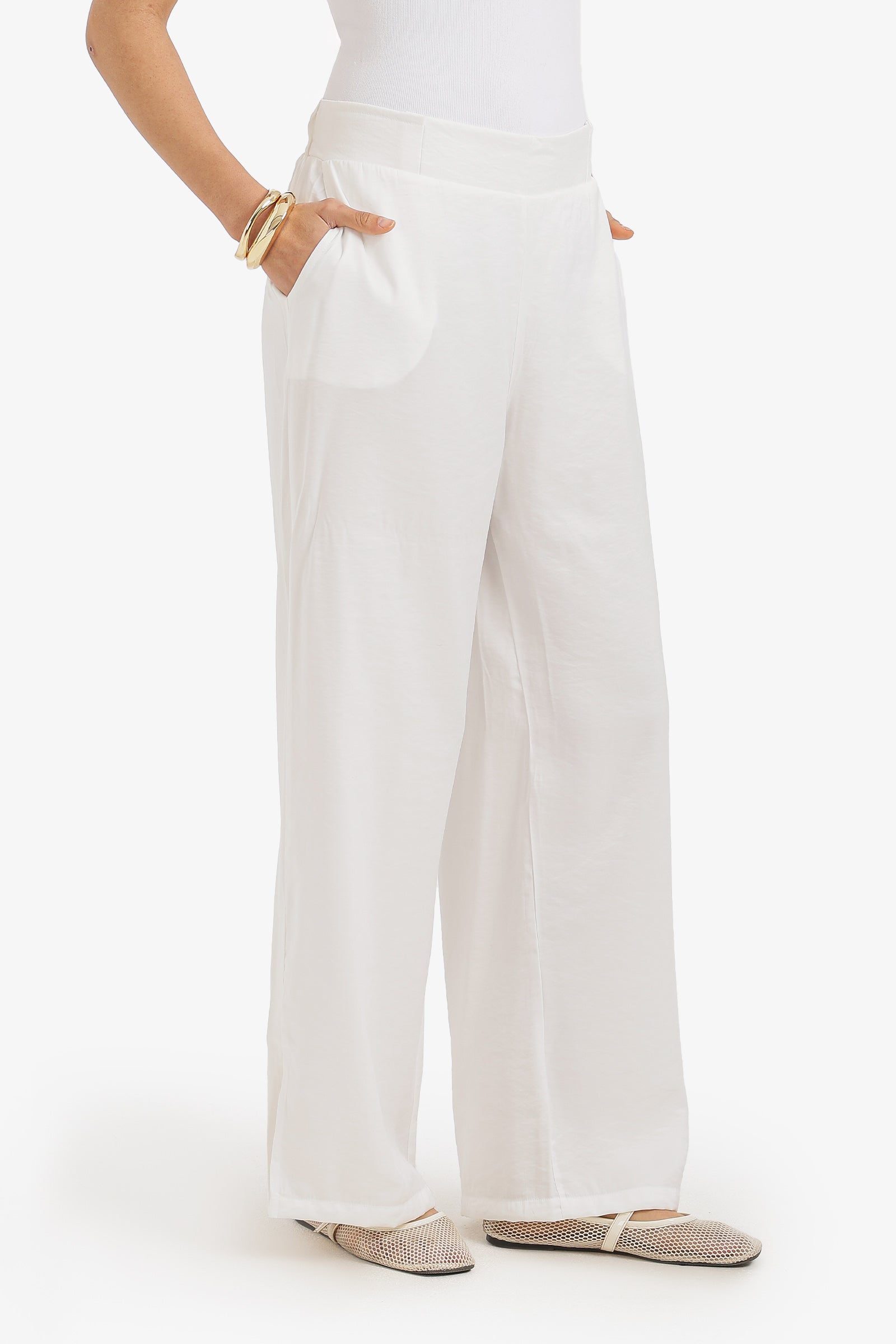 Plain Elasticated Waist Wide-Leg Pants – Off White