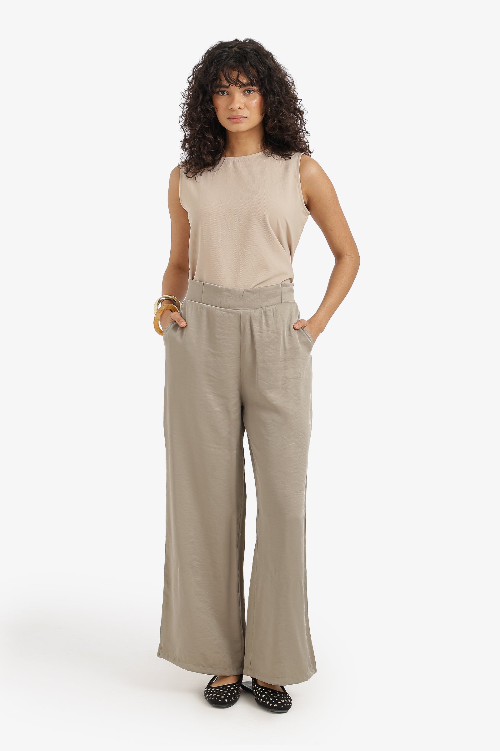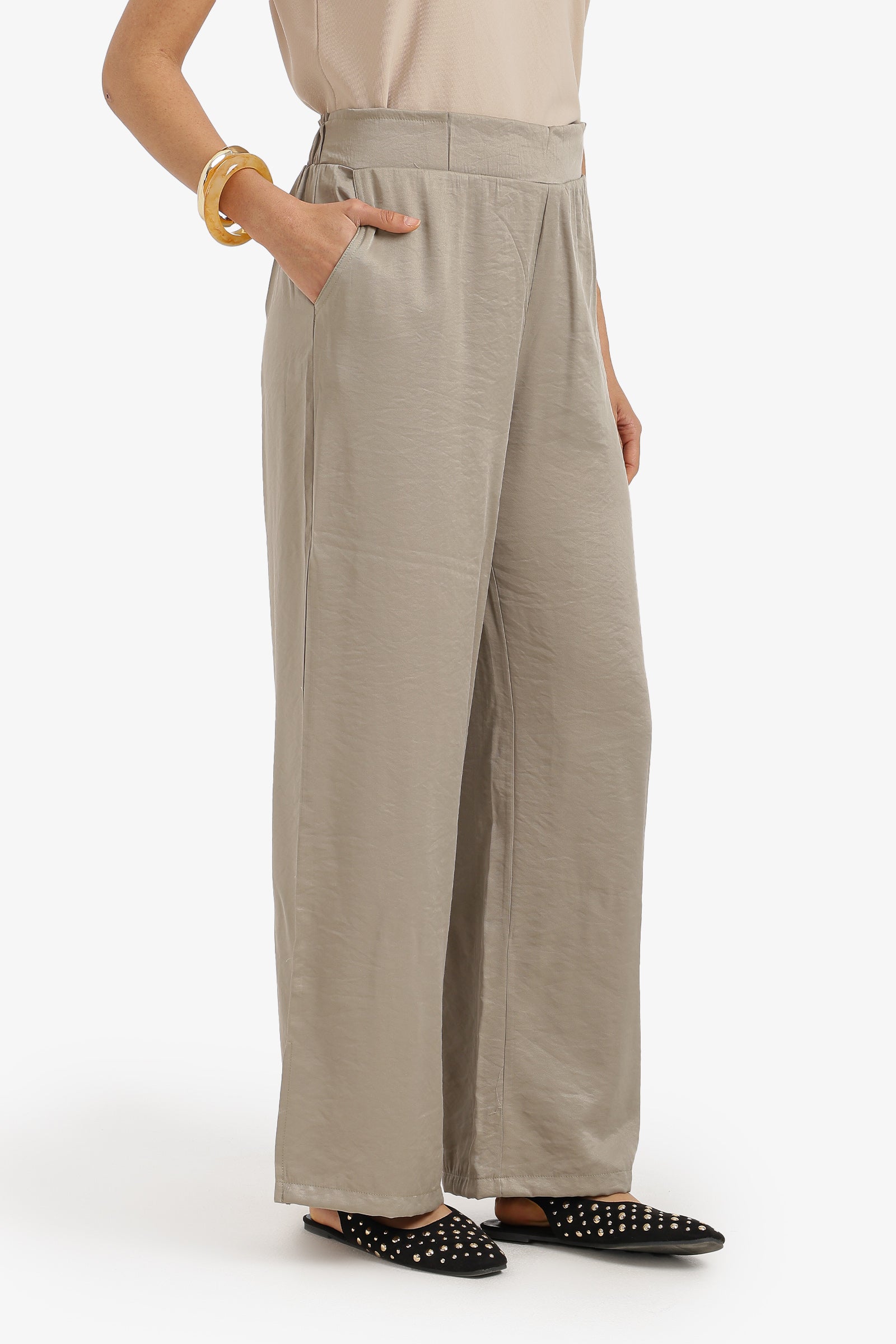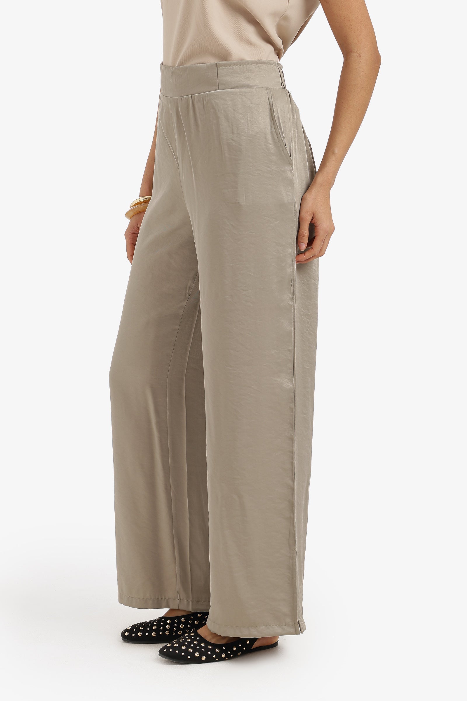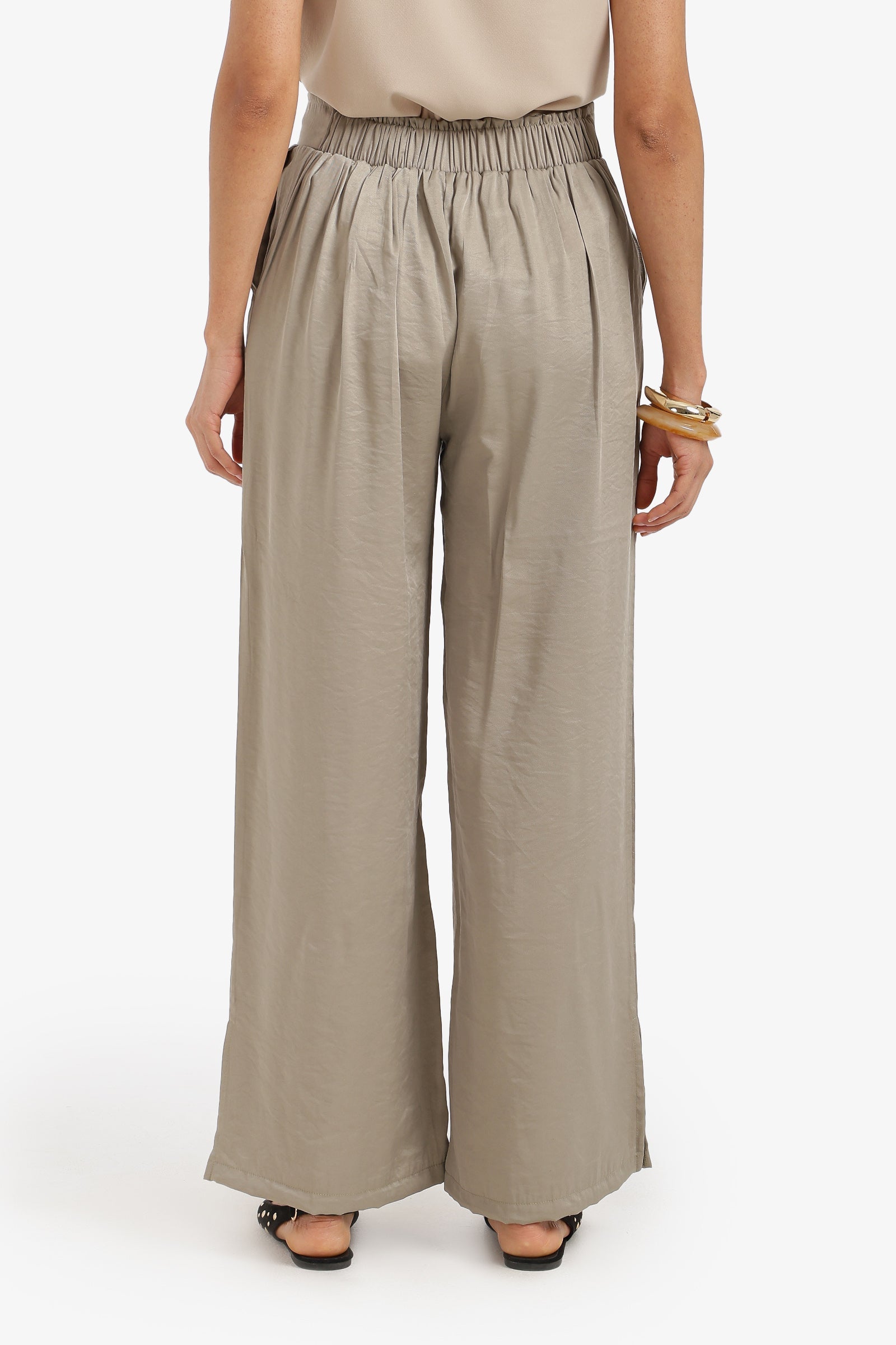 Plain Elasticated Waist Wide-Leg Pants – Olive