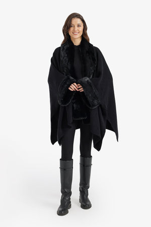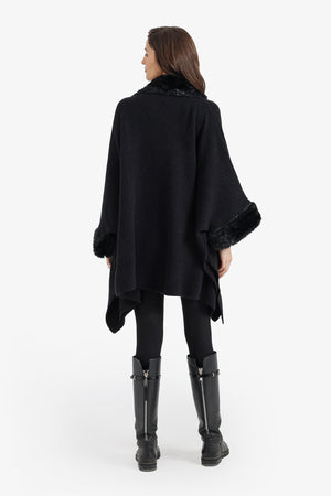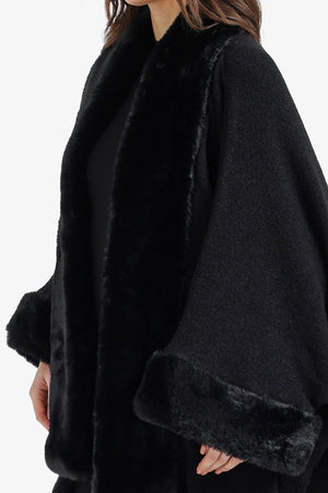 Plain Fur Trim Asymmetric Poncho – Black