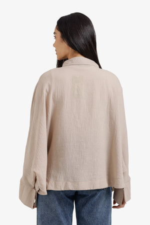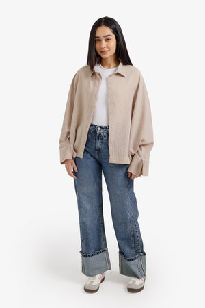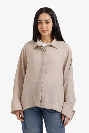 Plain Hidden Placket Oversized Shirt – Light Beige