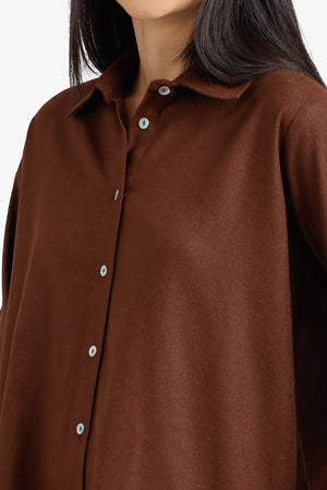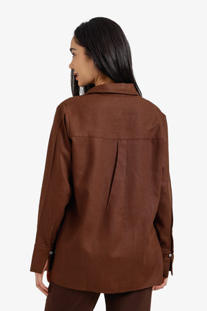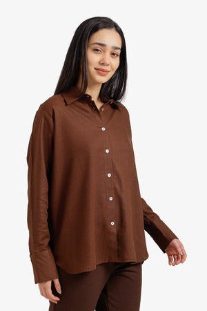 Plain Relaxed Button-Down Shirt – Dark Brown
