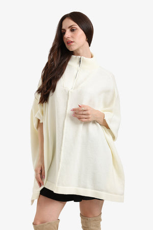 Plain Zip Neck Oversized Poncho Sweater – Off White