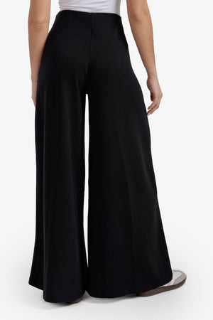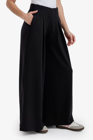 Pleated Ultra-Wide Leg Lounge Pants – Black