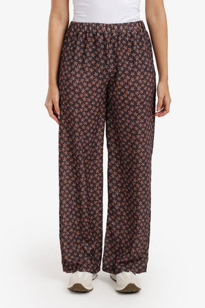 Printed Pattern Wide-Leg Pants – Black & Orange