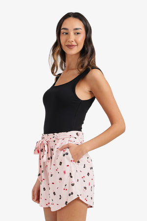 Printed Tie-Waist Scoop Neck Pajama Set – Multicolor
