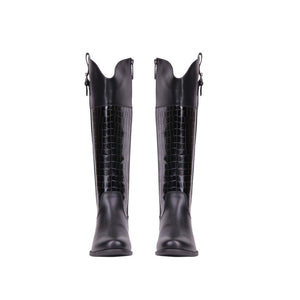 Pu Leather Croc-Embossed Knee-High Boots – Black (SR-3516)