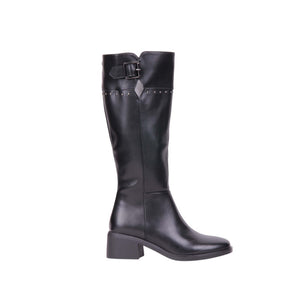 Pu Leather Studded Knee-High Boots – Black (SR-3552)