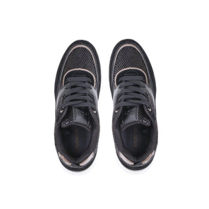 PU Leather Tweed-Pattern Sneakers - Black
