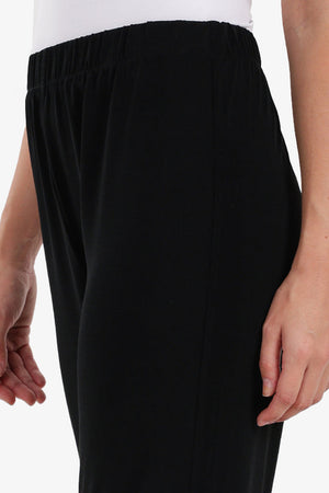 Relaxed Fit Wide-Leg Pants with Elastic Waist – Black