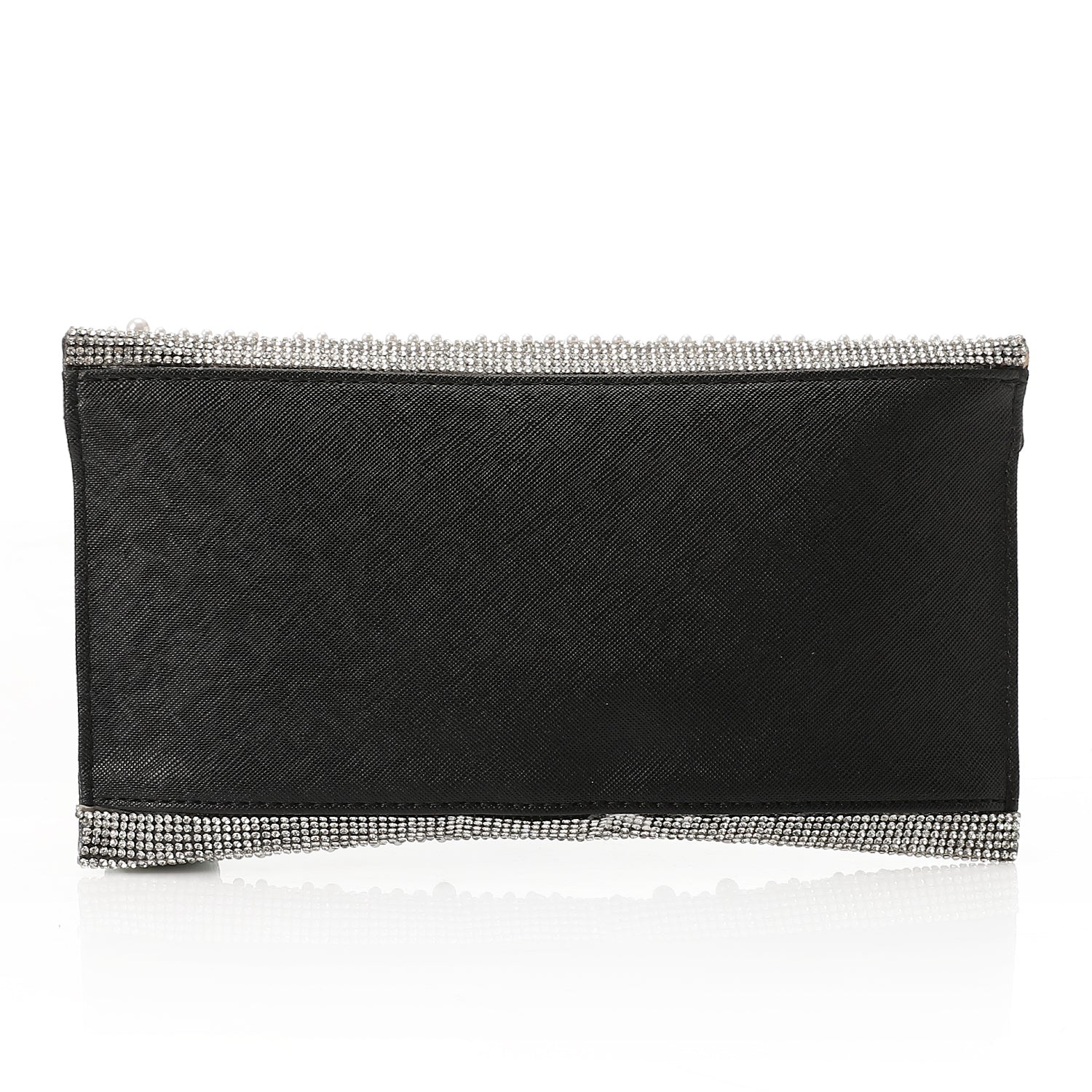 Rhinestone Embellished Envelope Evening Clutch – Black (4183)