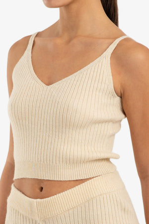 Ribbed Cropped Slim Fit Top – Light Beige