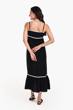 Tencel Solid Ric Rac Trim Beach Dress – Black