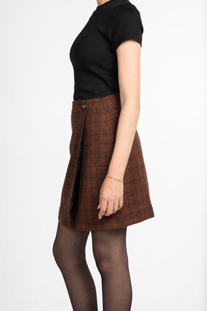 Wool Blend Checked Skirt – Brown